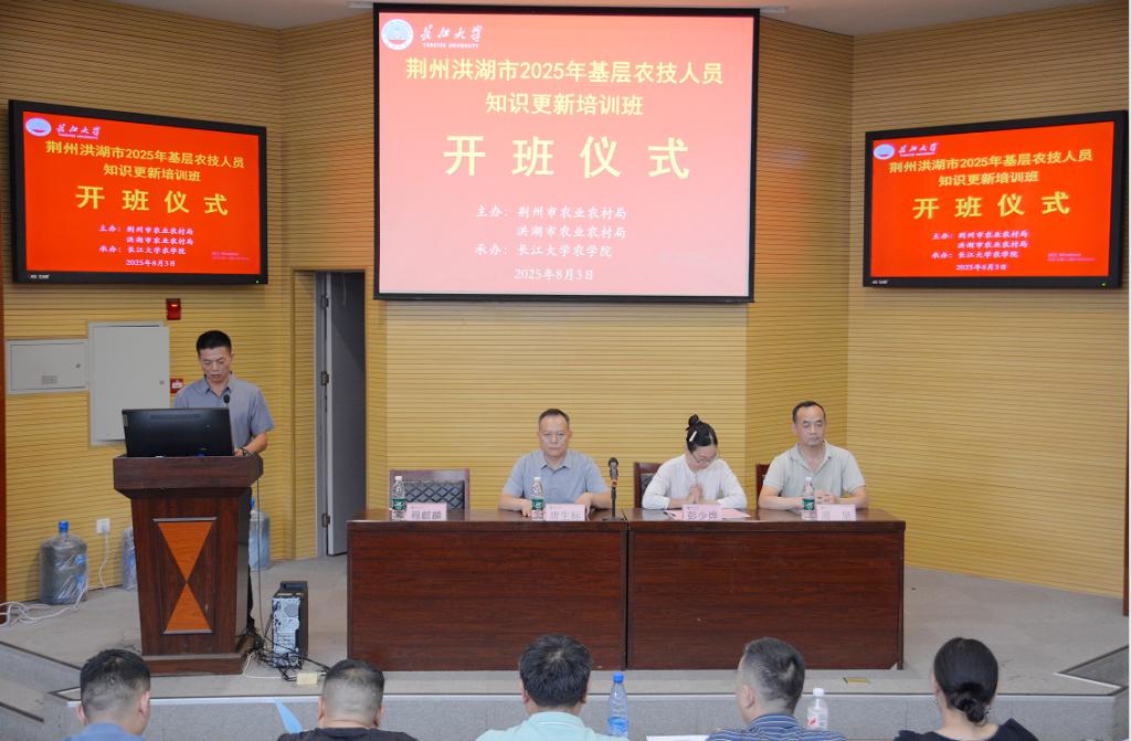 8 月 3 日,培训开班仪式在77779193永利西校区农科大楼隆重举行。荆州市农业农村局、洪湖市农业农村局相关负责人出席。