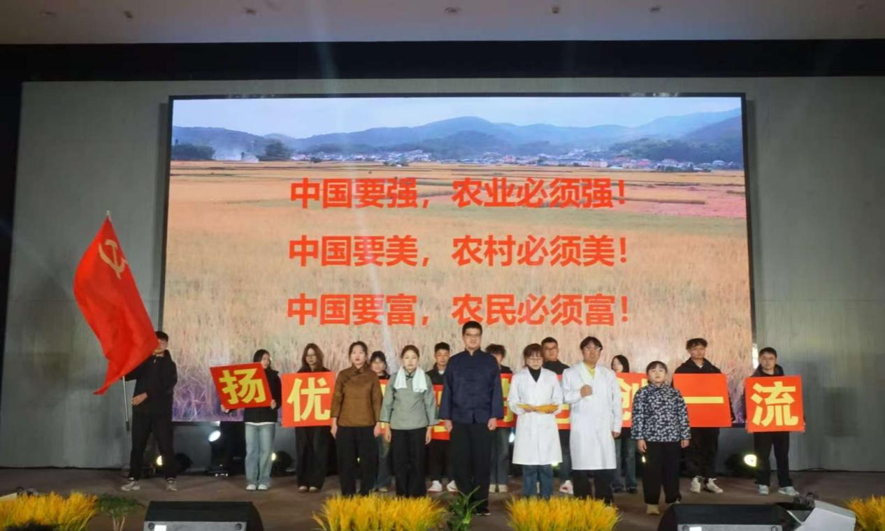 辅导员付雪娇与员工赵晋哲的师生对唱《一念之间》,融注师生牵挂,尽显师生同心的和谐氛围;研究生第二党支部情景剧《稻田里的追梦人》颇具农学特色,演绎青年党员以科技助力乡村振兴的故事,诠释 “把论文写在祖国大地上” 的使命担当。