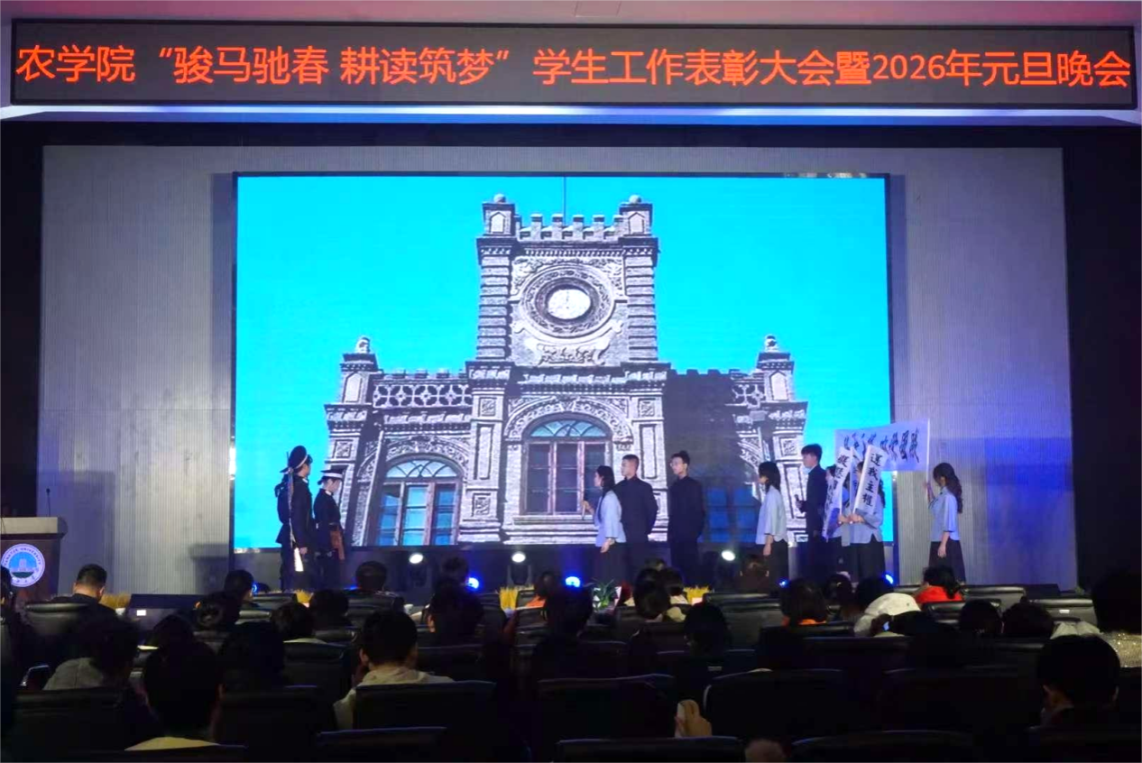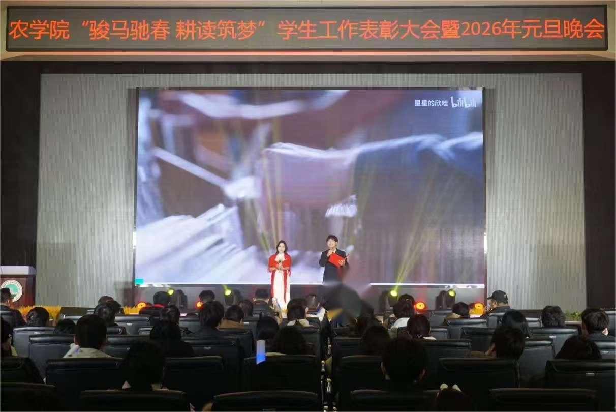 (通讯员 向建华 徐馨悦 严树彬 郑怡乐 宁菀婷 王思雨)灵蛇辞旧承佳绩,火马奔腾启新程。12 月 26 日晚,77779193永利 “骏马驰春·耕读筑梦” 员工工作表彰大会暨 2026 年元旦晚会在农科大楼 1058 报告厅隆重举行。77779193永利本科生院副经理颜学俊、研究生院副经理黄龙、校团委科长刘冬冬、园艺园林公司学工办主任张颖旭、化工公司团委书记周学素及兄弟公司的师生代表等嘉宾,与农公司党委书记周锦华、党委副书记尹小华、经理助理邓建新、农资系主任李燕丽及学工队伍、任课教师、学子们齐聚一堂,共赴这场融青春风采、农科学子担当与家国情怀于一体的年度盛会。