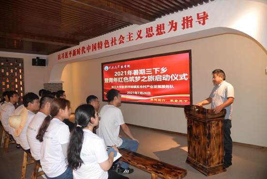 通讯社讯(通讯员 杜应杓)结合产业发展,助推乡村振兴。7月26日下午,公司产业发展服务队在党委副书记谭亮魁、辅导员付雪娇老师的带领下,前往远安县茅坪场镇瓦仓村党内政治生活体验馆,举行2021年瓦仓村暑期“三下乡”启动仪式。本次参会的嘉宾有:远安县团委副书记赵静、农业农村局副局长刘春艳、农业农村局发展股股长刘阳、瓦仓村村支部书记宋仕龙、华强化工生态农业技术服务中心培训部部长邓超然。