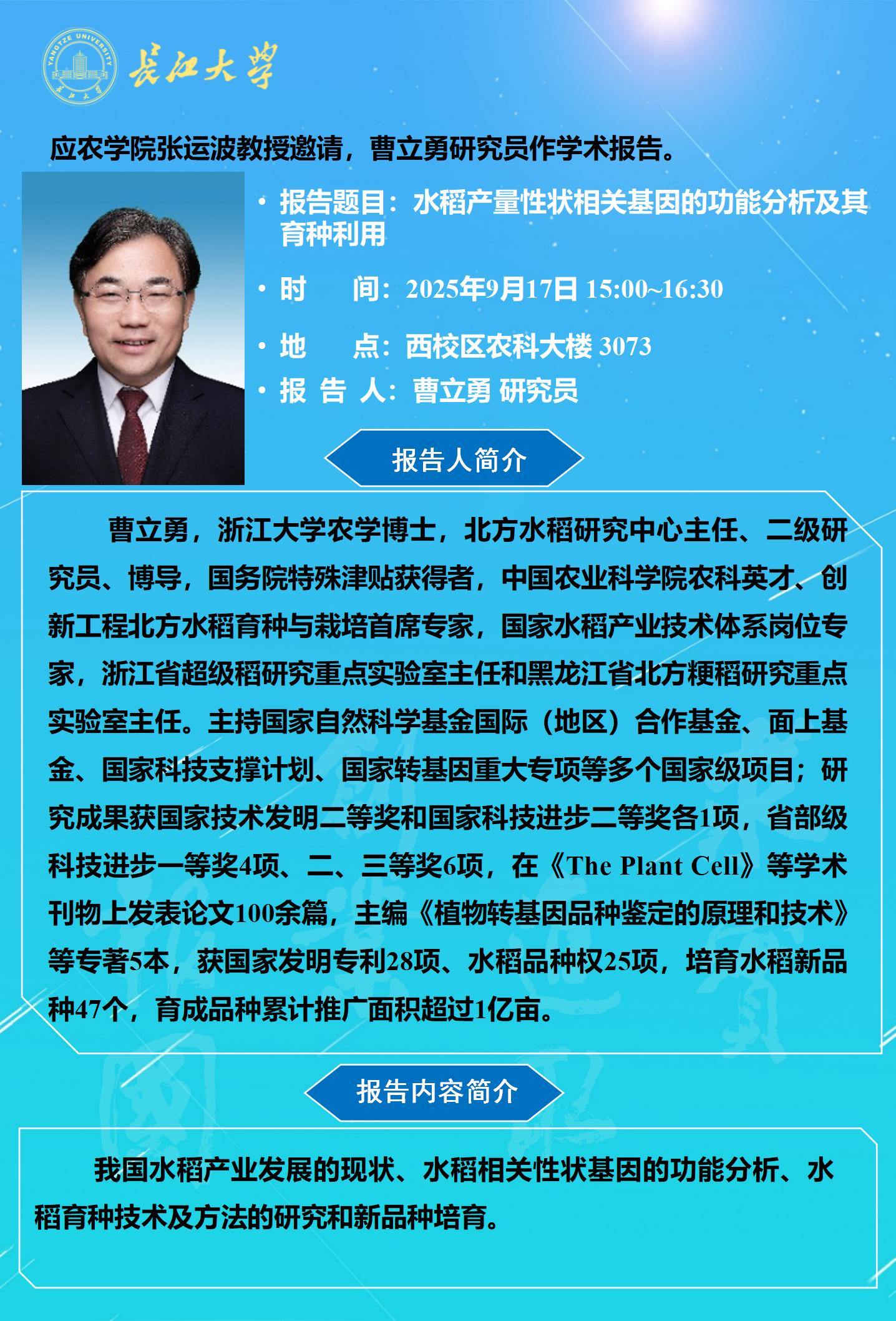 2025年学术报告(十六):水稻产量性状相关基因的功能分析及其育种利用