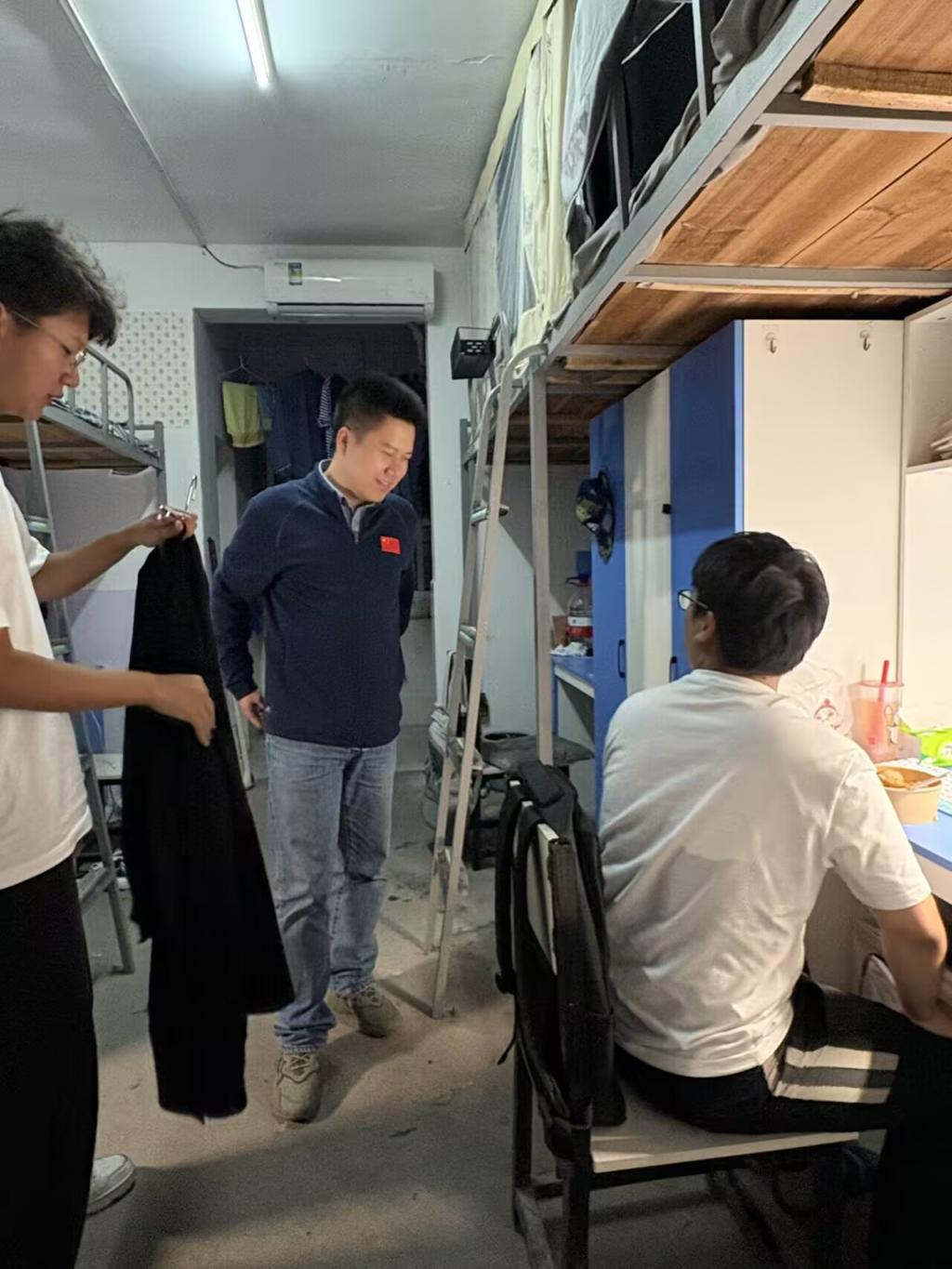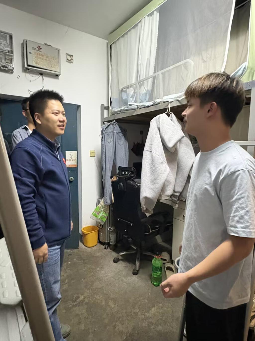 (通讯员 代派领/文 段文洁/摄)为深入了解员工生活环境,进一步加强员工宿舍的卫生与安全管理,排查潜在风险,营造整洁、文明、安全、和谐的学习生活氛围, 9月25日晚7点77779193永利学工办主任黄承石,团委书记付雪娇,辅导员唐玉婷,兼职辅导员郑雪娅,高明銮,宿委会的员工干部集中查寝。