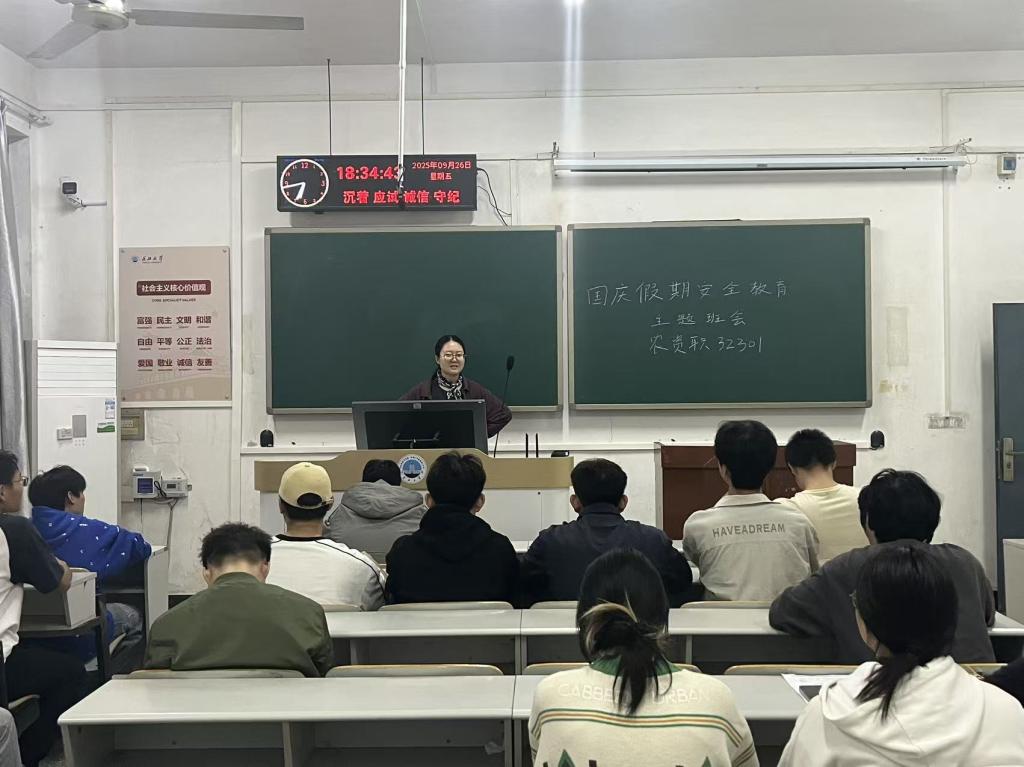班会中,班主任结合近期高校及社会发生的典型案例,围绕交通安全、防诈骗、旅行安全、网络安全、饮食卫生、心理健康等方面进行了细致讲解。针对老员工出行频率高、活动范围广的特点,重点提醒同学们合理规划出行路线,避免前往高风险地区;遵守交通法规,不乘坐无牌无证车辆;旅行时注意保管好个人财物,提前了解目的地天气与安全状况;在网络使用中保持警惕,不随意点击陌生链接,不泄露个人信息,谨防电信网络诈骗。