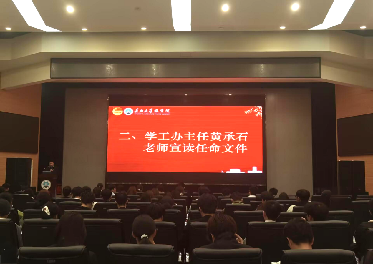 大会伊始,全体成员起立奏唱团歌,大会在激昂的旋律中拉开序幕。学工办主任黄承石宣读任命文件,明确了新一届团委员工会的组织架构与人员任命。随后,大会对第二十一届团委员工会主席团及部长(含宿委会)进行表彰,尹小华等老师为其颁发聘书,肯定他们过去的辛勤付出。