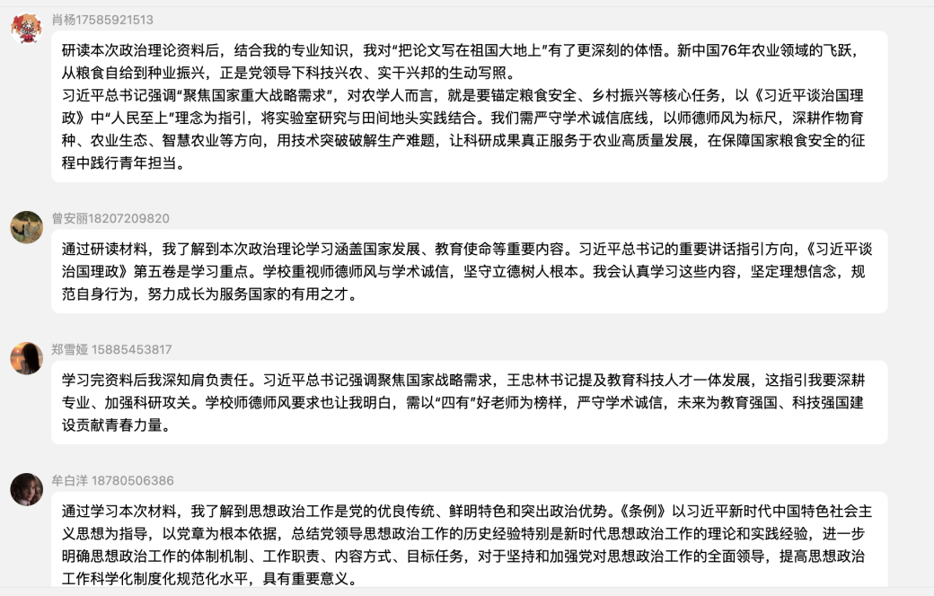 此次学习效果突出,同学们纷纷表示,个人理想与国家发展应紧密相连,在保障国家粮食安全、全面推进乡村振兴等重大领域,新时代青年肩负着不可推卸的使命。