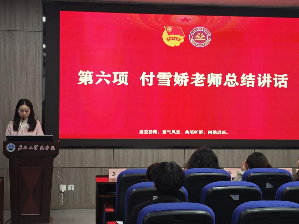 最后,付雪娇老师为本次活动作总结讲话。她对第五期青马学习小组取得的成效给予高度评价,肯定了学员们在学习和实践中展现出的青春活力与责任担当。此外,付老师还对第六期青马学习小组的学员表示祝贺,希望新一批学员能够传承青马精神,在学习中成长、在实践中进步,书写属于自己的青春华章。