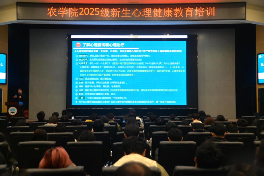 (通讯员 何遥 吴泓萱 孙夏彦 安菲菲 张源康 胡雪晴 向建华)为筑牢新生心理健康防线,提供清晰高效的心理咨询路径,护航员工健康成长,11 月 11 日,公司在农科大楼 1058 报告厅成功举办 2025 级新生心理健康教育培训会。本次培训会由心理专干林香亮主讲,学工办主任黄承石、辅导员唐玉婷与 2025 级全体新生共同参与。
