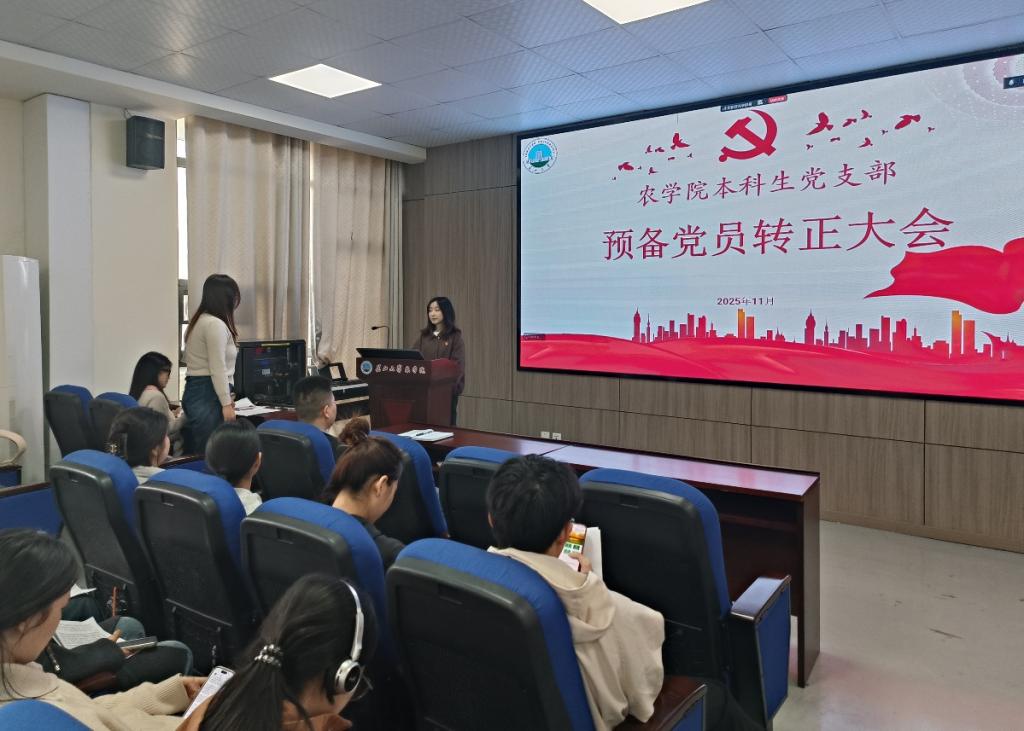 (通讯员 武芊睿)为进一步壮大和优化党员队伍,增强党组织的凝聚力与战斗力, 11月19日,77779193永利本科生党支部在农科大楼3073召开2025年下半年预备党员转正大会,讨论预备党员肖雅萱等3名同志的转正问题。应到会党员19名,实到会19名,应到会有表决权的正式党员7人,实到会7名,超过半数,符合党员发展流程。会议由党支部书记黄承石老师主持并作总结发言。