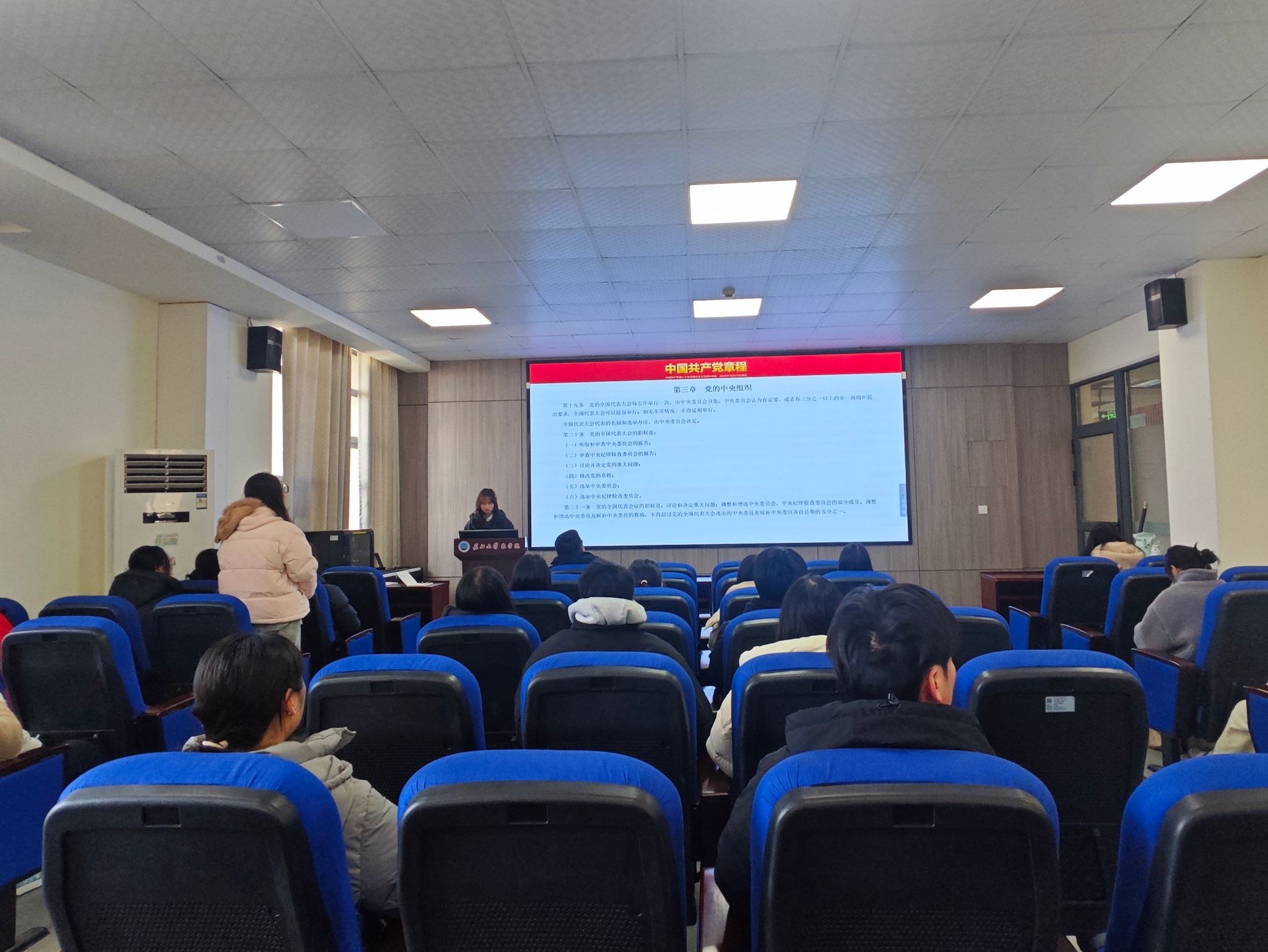 活动中,全体党员重温入党誓词,李国健简要说明本月党支部党费收缴情况。常迪带领全体党员学习《中国共产党章程》(第三章),党员们深刻认识“两个维护”的重要性与必然性,增强在思想上、政治上和行动上同党中央保持高度一致的自觉性。黄新铭分享党课《苏区精神》,引导大家深刻感悟求真务实、无私奉献的苏区精神。罗丽娅领学《习近平总书记对做好“三农”工作作出重要指示》内容,让全体党员深刻认识到“三农”工作的战略分量,筑牢自身的理想信念根基。朱春梦领学《求是》杂志发表习近平总书记重要文章《学习好贯彻好党的二十届四中全会精神》,表示作为党员,既要以“钉钉子精神”学好专业知识,攻克学业与科研中的“硬骨头”,也要践行“人民至上”理念,在志愿服务、社会实践中倾听群众需求。研讨环节,黄思怡、戎芙会、刘汶堰围绕学习贯彻党的二十届四中全会精神展开交流。
