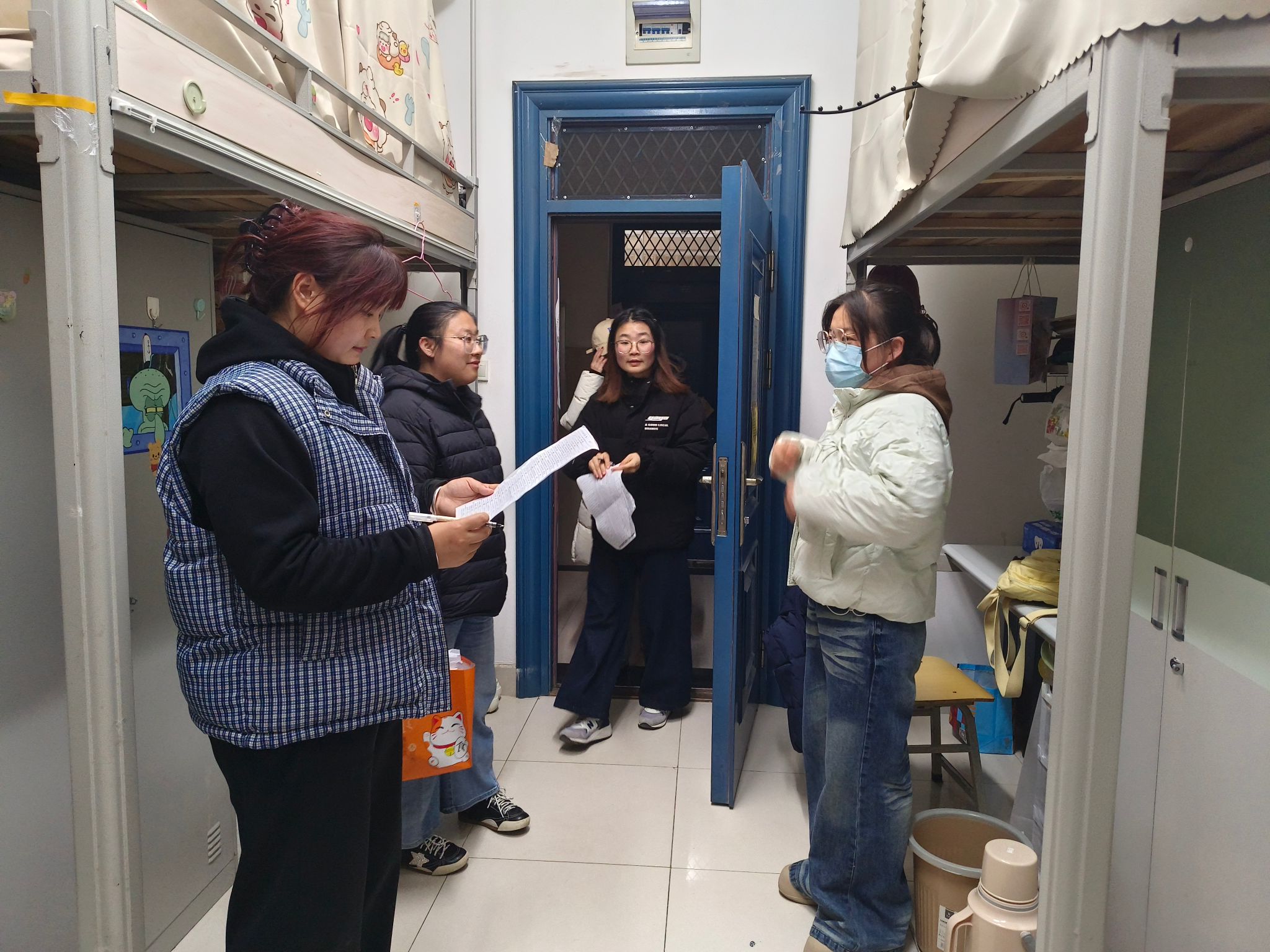 与此同时,吴宵洁带领研究生会干部重点对宿舍用电安全、消防设施、卫生死角等进行细致检查,对发现的问题现场提出整改要求,反复叮嘱同学们严格遵守宿舍管理规定,做到“人走电断、门窗关好”,为同学们营造安全、整洁的宿舍环境。
